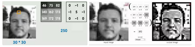 那怎么办?我们在图像中去一个3×3的块,将他的灰度值与另一个矩阵做运算(对应位置相乘,最后求和),遍历整张图片的所有位置,得出的数值形成一个新的图像,这种方式就叫做卷积运算。刚刚给出的矩阵就叫做卷积核。