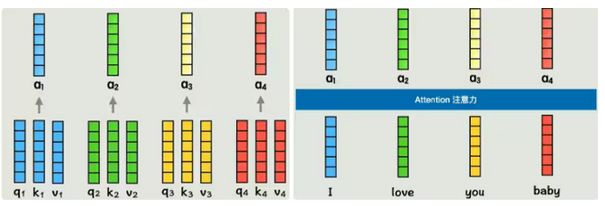同理,我们得到了所有词的新词向量, 每一个新词向量都包含了所有的上下文信息。这就是注意力机制attention所做的事情。