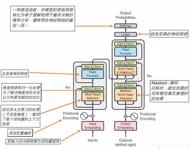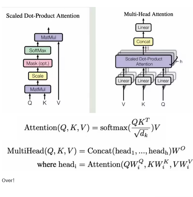我们之前介绍的单头注意力和多头注意力都省略了一些步骤,详细的步骤和公式请看下图。