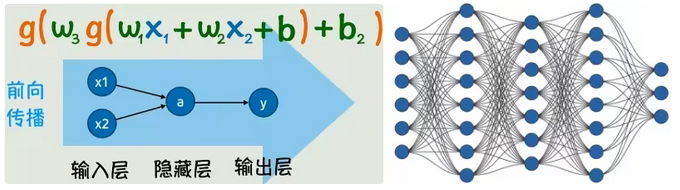 从神经网络的图示来看,就像是一个信号从左向右传播的过程,这个过程就叫做神经网络的前向传播。并且神经网络的层数和每一层的神经元都可以叠加,这样就可以构成一个非常复杂的非线性函数。看起来复杂,但是我们的目标还是一开始说的:找到一个近似解,也就是根据已知的x、y猜出所有的w和b。