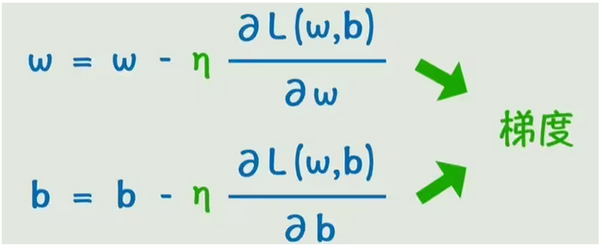 调整w的值(增大),如果损失函数增大,我们就反向调整w。就这样不断调整w和b(所有参数)使得损失函数不断减小。而损失函数L随着参数w变化而变化的程度,其实就是损失函数对w的偏导数。而我们要做的,就是让w和b不断地向偏导数地反方向去变化。具体变化的快慢,我们再增加一个系数(学习率)来控制。这些偏导数所构成的向量就叫做梯度。不断变化w和b使得损失函数不断减小,进而求出最后的w和b,这个过程就叫做梯度下降。
