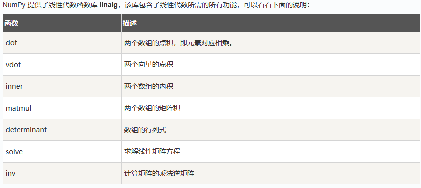 numpy.linalg.det() 函数计算输入矩阵的行列式。