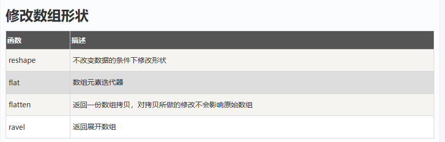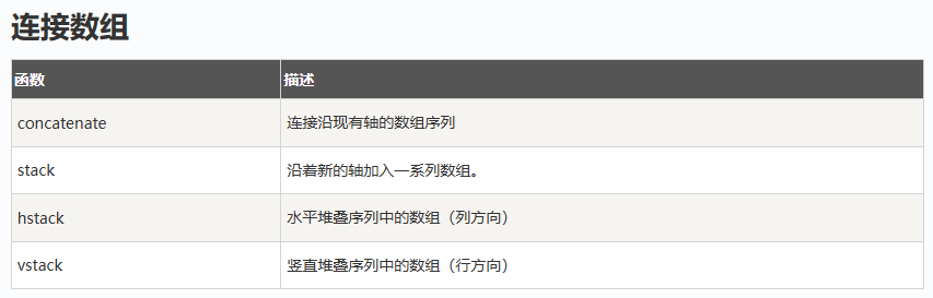 数组操作 January 21, 2026 • 12 words • 1 min Numpy python 对数组进行操作的函数整理 修改数组形状 翻转数组 修改数组维度 连接数组 分割数组 数组元素的添加与删除 查找元素 np.argwhere(a == num) #返回的是一个数组,坐标 Previous 文件操作 Next 数组函数