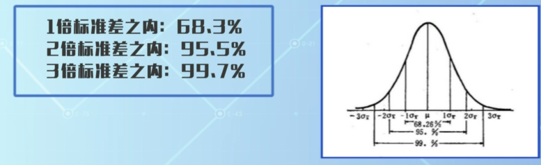 3δ准则:正态分布3倍标准差之外为异常,例如标准差2,平均值10,那4-16之间的值为有效值 (读音:三 德尔塔)