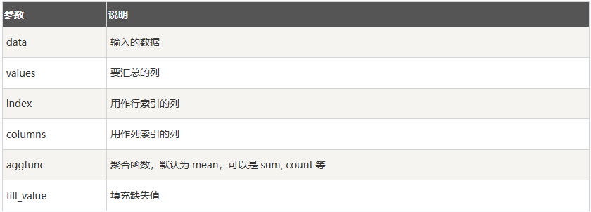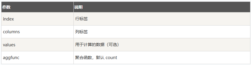 用指定的列进行行、列分类汇总,values 是需要聚合的值,aggfunc 是聚合函数