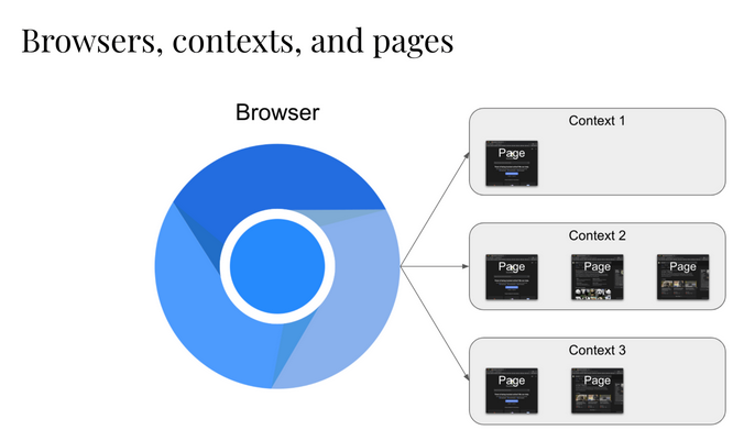 BrowserContext(浏览器上下文):一个BrowserContext就像一个独立的浏览器会话。它完全隔离了页面、本地存储、cookies 等数据。这使得你可以在一个浏览器中同时运行多个互不影响的自动化任务,就像你在隐身模式下打开了多个标签页一样。